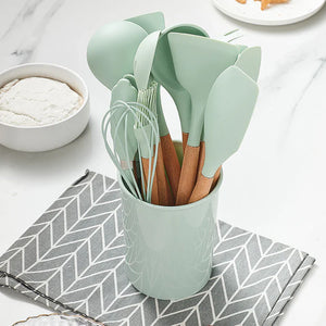 5Pcs Silicone Non Stick Baking Set with Wooden Handle